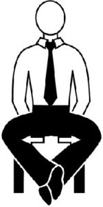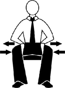 همانطور که بر روی صندلی نشستهاید دست راست را بر روی قسمت بیرونی زانوی راست گذاشته و با تمام نیرو زانو را فشار دهید مثل این که میخواهید زانو را به سمت پای چپ هل دهید. در همان زمان با پای راست فشاری در خلاف جهت دست و برای مقابله با آن وارد کنید. این کار را با دست و پای چپ تکرار کنید.
