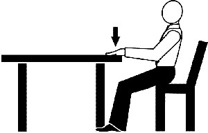 دست راست را برروی میز و دست چپ را زیر میز بگذارید و دست راست را با تمام قدرت و به سمت پایین فشار دهید. همزمان دست چپ را به سمت بالا فشار دهید. وقتی خسته شدید جای دستها را عوض و تمرین را تکرار کنید.