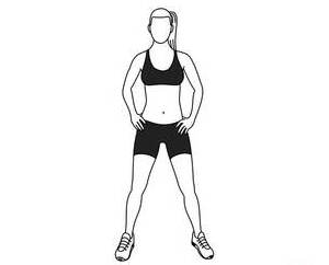 ۳۰ ثانیه + ۳۰ ثانیه. کمر خود را صاف نگه داشته و رانها را نیز در کنار یکدیگر نگه دارید. اگر نیاز به پشیبانی بیشتر دارید، دست خود را بر روی دیوار بگذارید.