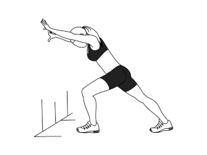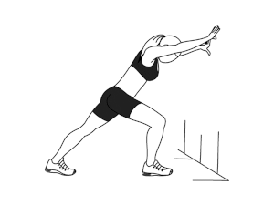 ۳۰ ثانیه + ۳۰ ثانیه. در حین اینکه کپلها را به سمت پایین و جلو میبرید، پاشنه پای عقب را به زمین فشار داده و زانوی پای عقب را صاف نگه دارید.