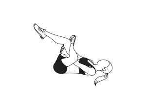 ۳۰ ثانیه + ۳۰ ثانیه. پای چپ را روی پای راست انداخته و هر دو زانو را به سمت سینه خود بکشید. پای راست را به سمت خود بکشید و کشش را نگه دارید. سپس، حرکت را برای پای مخالف،تکرار کنید.