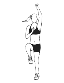 ۶۰ ثانیه. یک زانو را تا کمر بالا آورده و دست مخالف را به بالای سر دراز کنید. حرکت را برای سمت دیگر بدن نیز تکرار کنید و مرتب ادامه بدهید تا ۶۰ ثانیه تمام شود.