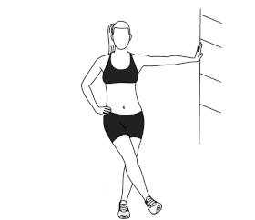 ۳۰ ثانیه + ۳۰ ثانیه. همچنان که با دست به دیوار تکیه دادهاید، یک پا را از یک جهت به جهت دیگر، تاب بدهید.