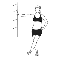 ۳۰ ثانیه + ۳۰ ثانیه. به یک دیوار تکیه کرده و یک پا را به آرامی به سمت عقب و جلو تاب بدهید.