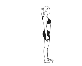 ۲) زانوها را خم کرده و کپلها را به عقب ببرید تا باسن، مت را لمس کند.