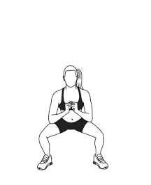 ۱) در موقعیت اسکوآت قرار بگیرید. پاها را به اندازه عرض شانه از هم باز کنید. انگشتان پا باید به سمت جلو باشند.