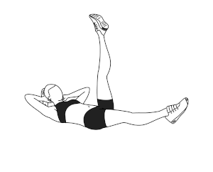 ۲) شانهها را از زمین بلند کنید. پای راست را با زاویه ۹۰ درجه بالا برده و نگه دارید و پای چپ را به فاصله چند سانتیمتر از زمین بلند کنید.