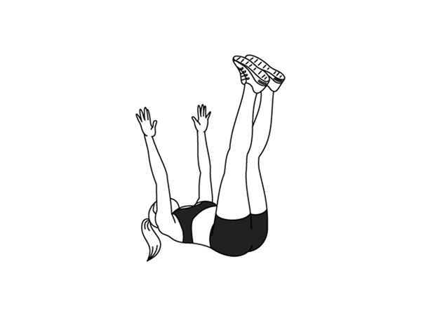 ۱) به پشت دراز بکشید و دستها و پاها را به سمت سقف دراز کنید.