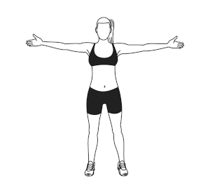 ۱) بایستید و پاها را به اندازه عرض کپل از هم باز کنید.