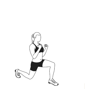 صاف بایستید. صورت رو به جلو باشد. هسته بدن را محکم و کمر را صاف نگه دارید. وقتی که حرکت لانژ را انجام میدهید، زانوی پای جلو را همتراز با قوزک پا نگه داشته و وزن را بر روی پاشنه پای جلو بیاندازید. زمانی که لگد میزنید، عمل بازدم را انجام داده و به موقعیت اولیه بازگردید و یا مستقیماً لانژ بعدی را انجام بدهید.
