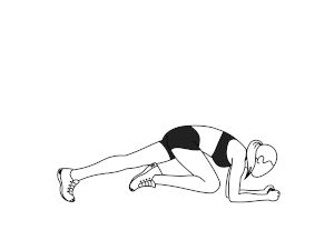 ۲) زانوی راست را به آرنج راست نزدیک کرده و حرکت کرانچ را انجام بدهید.