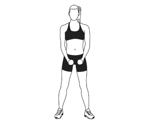 ۱) یک جفت دمبل را در دستهای خود نگه دارید و صاف بایستید.