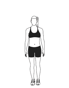 ۱) صاف بایستید. پاها در کنار یکدیگر و دستها در طرفین و کنار بدن باشند.