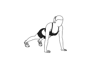 ۱) در موقعیت پلانک قرار گرفته و مچ دستها را در زیر شانه ها قرار بدهید و پاها را به اندازه عرض کپل از هم باز کنید.