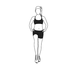 ۱) صاف بایستید و پاها را به اندازه عرض کپل از هم باز کنید و دستها را در کنار بدن نگه دارید.