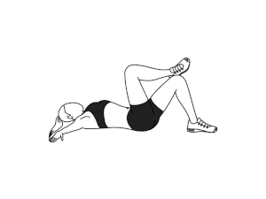 ۲) پای راست را بر روی زانوی چپ بگذارید و دست چپ را تکیهگاه سر خود کنید.