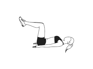۱) به پشت دراز بکشید و دستها را در طرفین و کنار بدن بگذارید. زانوها را تا جایی که با ساق پاها زاویه ۹۰ درجه بسازند، بلند کنید. ساق پاها باید به موازات زمین قرار گرفته باشند.