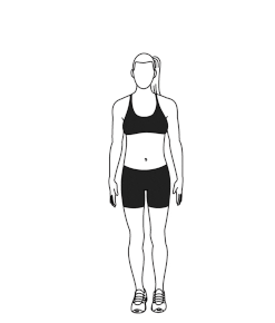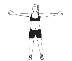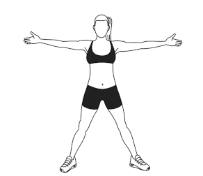 ۳۰ ثانیه. بالا بپرید. پاها را از هم باز کنید و دستها را در بالای سر به هم برسانید. دوباره بپرید و به وضعیت اولیه بازگردید.