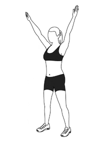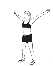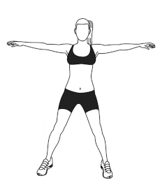 ۶۰ ثانیه. بایستید و پاها را به اندازه عرض شانه باز کنید. دستها را بالا آورده و در طرفین بدن دراز کنید. سپس، به بالا بپرید و پاها و دستها را مانند گازانبر به شکل متقاطع از کنار هم بگذرانید.