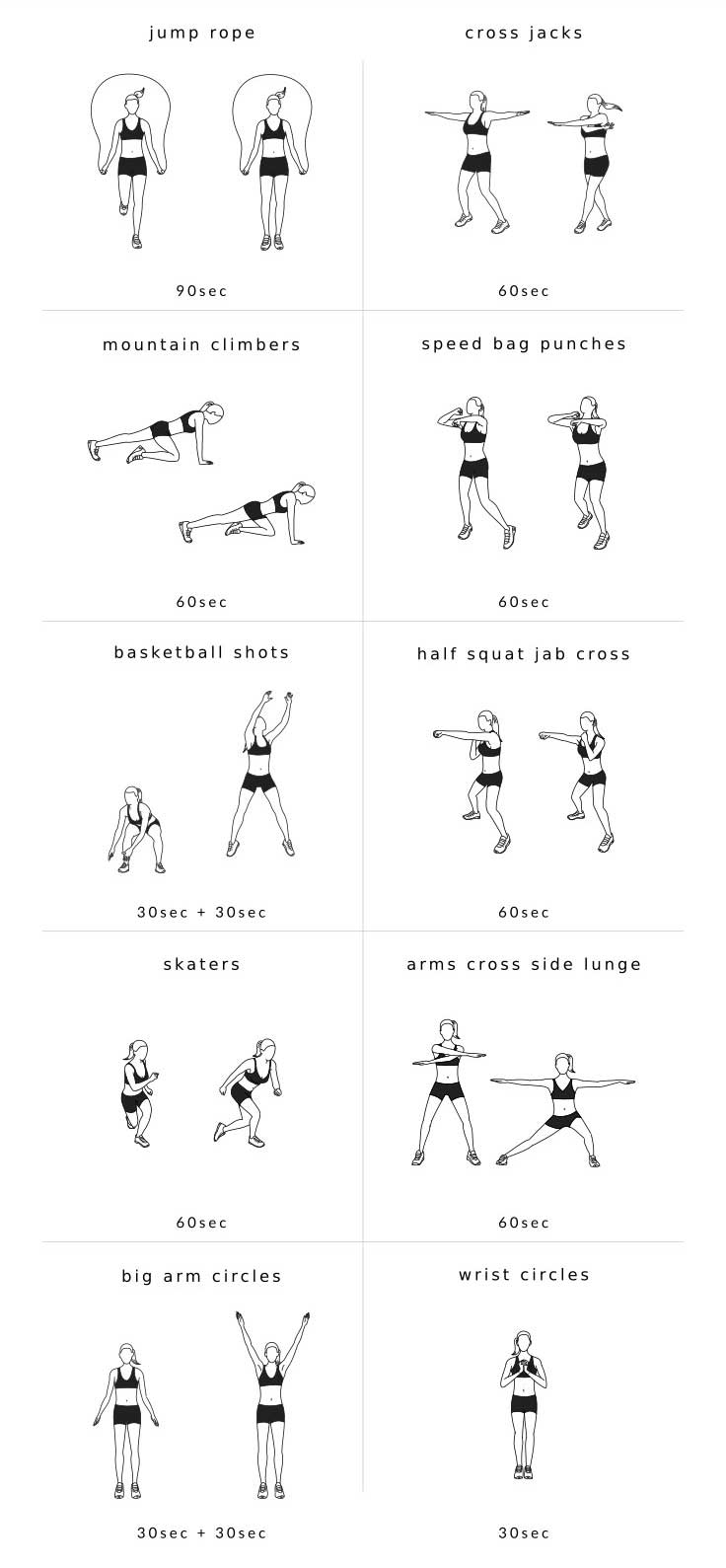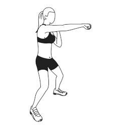 ۶۰ ثانیه. پاها را به اندازه عرض شانه باز کنید. زانوها را کمی خم کرده و کپلها را به پایین و عقب بکشید و دستها را بالا آورده و جلوی روی خود قرار بدهید. یک دست را در موقعیت مشت زدن قرار داده و سپس، به سرعت جای آن را با دست دیگر عوض کنید و دست دیگر را در موقعیت مشت زدن قرار بدهید.