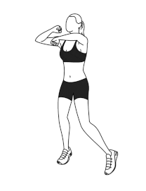 ۶۰ ثانیه. به سمت راست بپرید و پای چپ خود را به پشت ببرید و دست چپ را به جلو بیاورید. سپس، به سمت چپ بپرید و دست راست را به جلو آورده و پای راست را در پشت قرار بدهید. این حرکت را برای طرفین بدن به مدت ۶۰ ثانیه تکرار کنید.