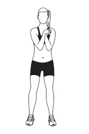 ۶۰ ثانیه. بایستید و آرنجها را تا سطح شانه، بالا بیاورید. وزن خود را بر روی پای راست بیاندازید و ساعد دست راست را دو مرتبه بچرخانید. سپس، حرکت را برای سمت دیگر بدن، تکرار کنید.