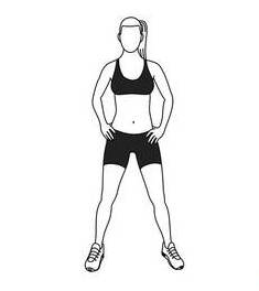 ۲) حرکت پروانه: ۶۰ ثانیه. بایستید و پاها را به اندازه عرض شانه باز کنید. به سمت بالا بپرید و پاها را از هم باز کنید و دستها را در بالای سر به هم نزدیک کنید. مجدداً بپرید و به موقعیت اولیه بازگردید.