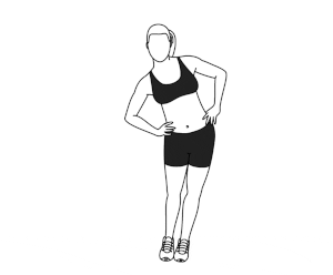 ۸) گام از یک سو به سوی دیگر: ۶۰ ثانیه. در حالت آمادهباش، بایستید و زانوها را کمی خم کنید و کپلها را به عقب بکشید. چند قدم کوچک و سریع به سمت راست برداشته و مچ پای راست خود را لمس کنید. حرکت را برای سمت چپ بدن تکرار کنید.
