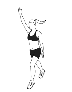 ۱) درجا دویدن: ۹۰ ثانیه. صاف بایستید. سینه را جلو بدهید و زانوها را بالا آورده و به آرامی بر روی پنجه پا فرود بیایید.