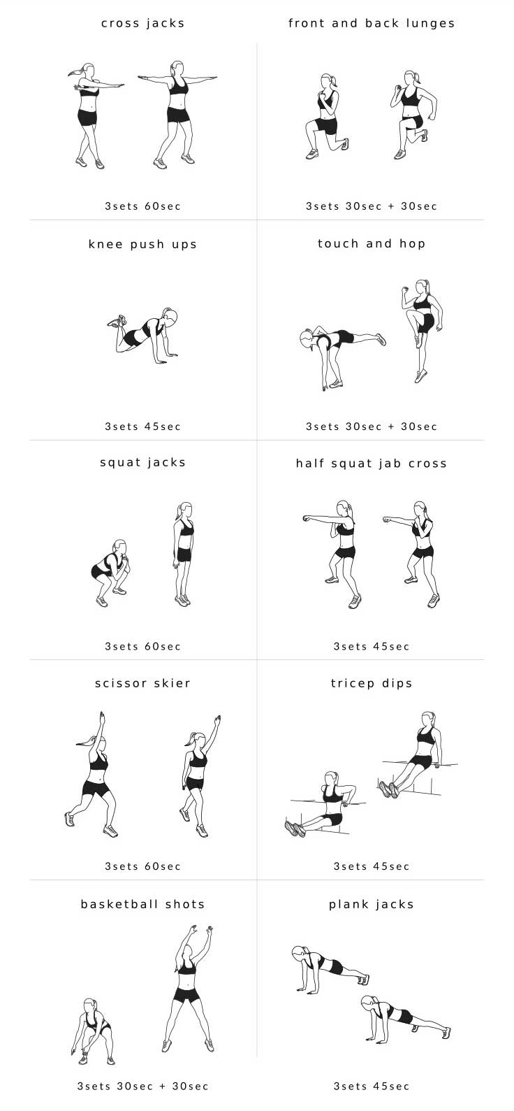 این ورزشها را در ۳ ست انجام داده و در بین هر ست، ۶۰ ثانیه استراحت کنید.