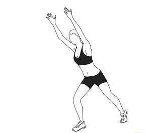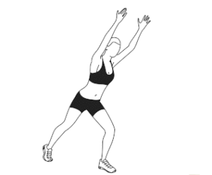 ۳) حرکت پروانه تعدیلشده: ۶۰ ثانیه. پاها را در کنار هم قرار بدهید. دستها نیز در کنار بدن قرار داشته باشند. یک قدم به یک سمت بدن برداشته و دستها را به بالای سر ببرید. به وضعیت اولیه بازگردید و حرکت را برای سمت مخالف بدن، تکرار کنید.