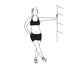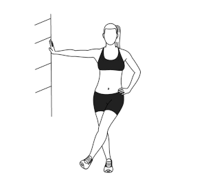 ۹) تاب دادن پا رو به جلو: ۳۰ ثانیه + ۳۰ ثانیه. صاف بایستید و با دست به دیوار تکیه کنید. یک پا را به آرامی به جلو و عقب تاب بدهید. سپس همین حرکت را برای پای دیگر، تکرار کنید.